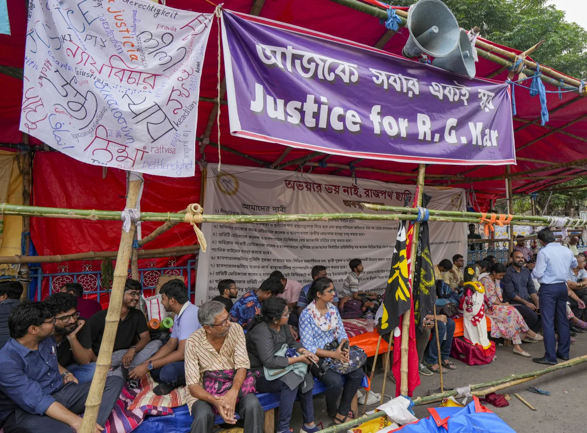 The 'fast-unto-death' by junior doctors demanding justice for the murdered woman medic of RG Kar Medical College and Hospital and workplace safety continued on Monday.